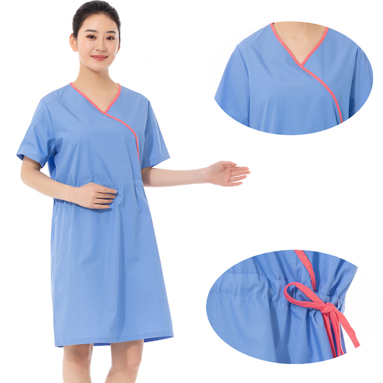Ang Patient's Robe ay may mahabang manggas, maikling manggas at hindi manggas. Mayroon itong elastic/knitted cuff. Ito ay may mga tali sa leeg at baywang, na may sterilized at non-sterilized, V-neck at mga bulsa ay magagamit. Maaari rin nitong i-print ang iyong partikular na Logo. Ito ay chlorine-resistant, mabilis na tuyo, walang pilling, natural na balat, breathable, hindi nakakalason.